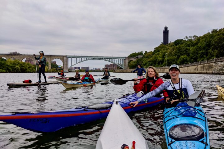 This is the classic NYC paddle and one of the most unforgettable ways to experience the city — a full circumnavigation of Manhattan by kayak or paddleboard. Along this 30-mile route, you’ll pass every major skyline landmark and 21 bridges connecting Manhattan to Brooklyn, Queens, the Bronx, and New Jersey. From the Battery to Inwood Hill Park, the scenery shifts from skyscrapers to hidden beaches, waterfalls, and salt marshes that still echo the island’s original shoreline.