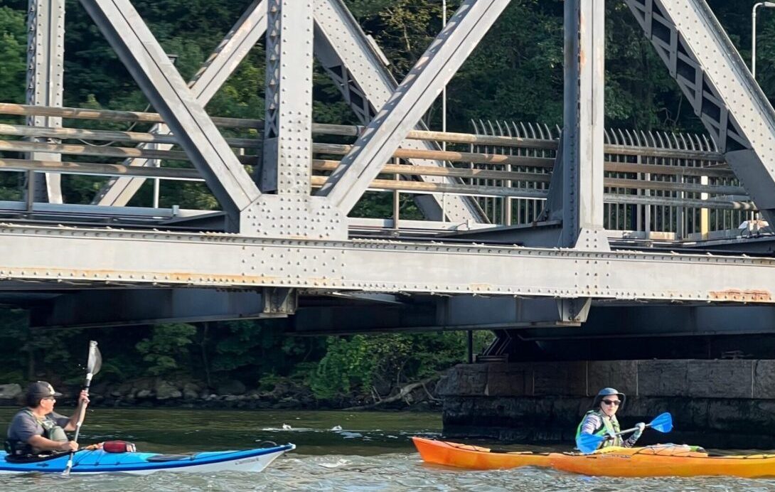 We paddle north from the Pier 84 Boathouse past the George Washington Bridge to the tidal strait that connects the Hudson River and Harlem River. Spuyten Duyvil Creek, whose name means “in spite of the Devil” in Dutch, is a quaint and scenic place to take an hour break to eat lunch. See the Little Red Lighthouse and Riverside Park on the way. We cover 18 miles round trip.