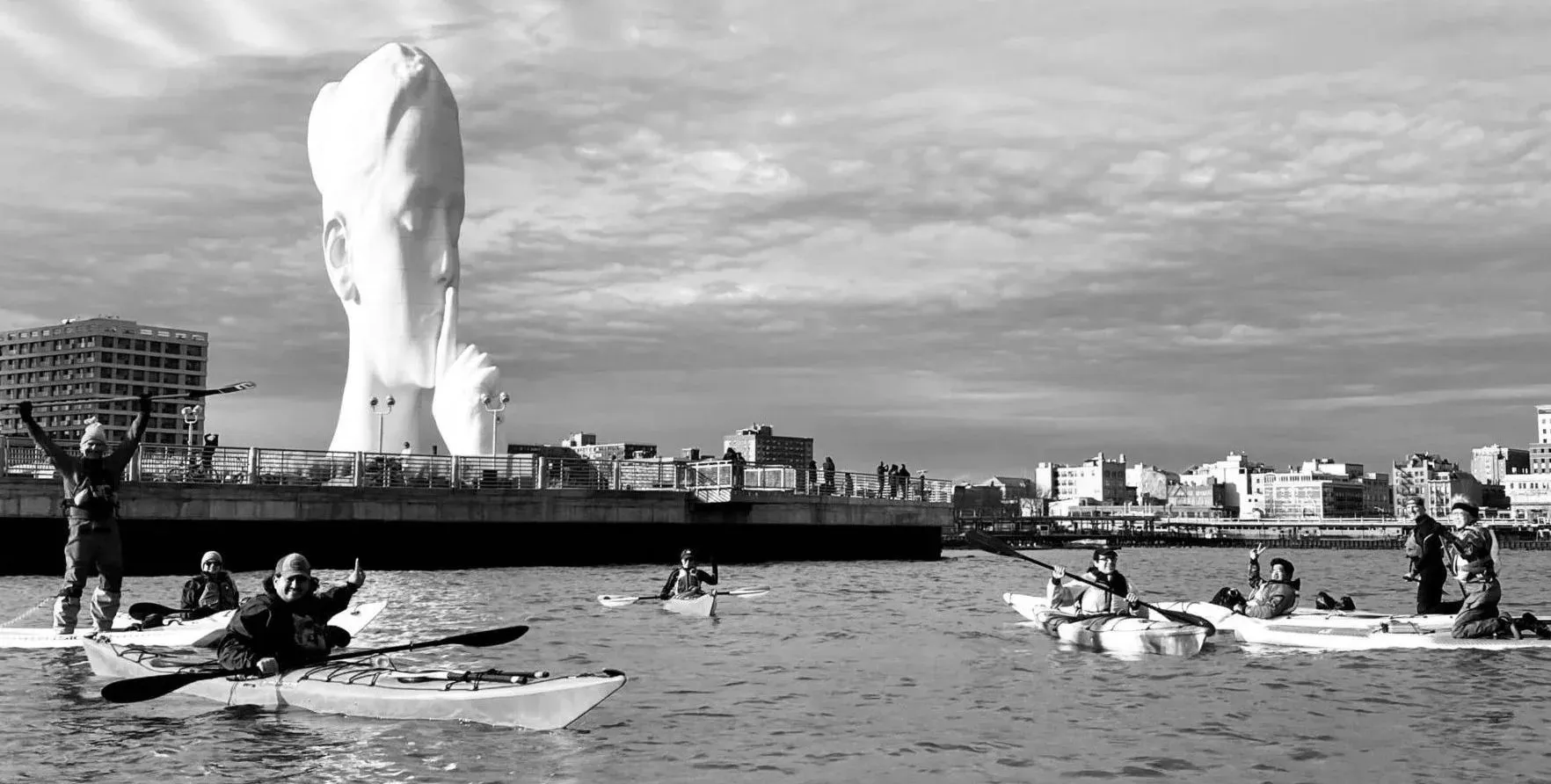 On this special tour, we paddle across the Hudson River to Jersey City for an unforgettable view of Water’s Soul, an 80-foot sculpture by artist Jaume Plensa. Best seen from the water, this striking figure with a finger to her lips invites viewers into quiet reflection amid the NYC skyline. We’ll launch from the Pier 84 Boathouse and cross the river together for a peaceful yet powerful encounter with one of the region’s most iconic new works of public art. We’ll have an on-water snack break along the Jersey City coast before heading back. This trip has no landing stops.